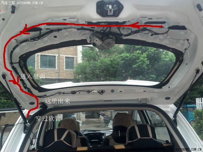 7、接下来,自己安装了。要想自己安装,安装前的功课是少不了的,论坛各种查。本人对于自己安装,这点把握是有的,本人学机电的,动手能力是有的,以前开了10年摩托,最初两年摩托坏了叫车行修,修时看着,维修技术也学了来,后来坏了自己都会修了。拆那个中控,网店论坛已有介绍,我重点分享下倒车摄像的安装,这花了我很多时间,通过论坛询问及百度搜索还有自己动脑,终于完美解决。
