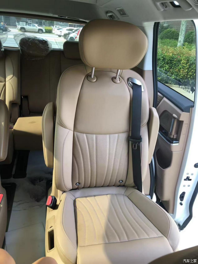 内饰选的棕色,一开始是想选白色,白色的好看,但孩子多,实在不太经脏,所以选了棕色,一般都是我当司机,家人也是头一次坐这么大的车,反馈都比较好,乘坐起来很舒服,唯一不太完美的就是后排不能完全放平,当成沙发床,略有遗憾。