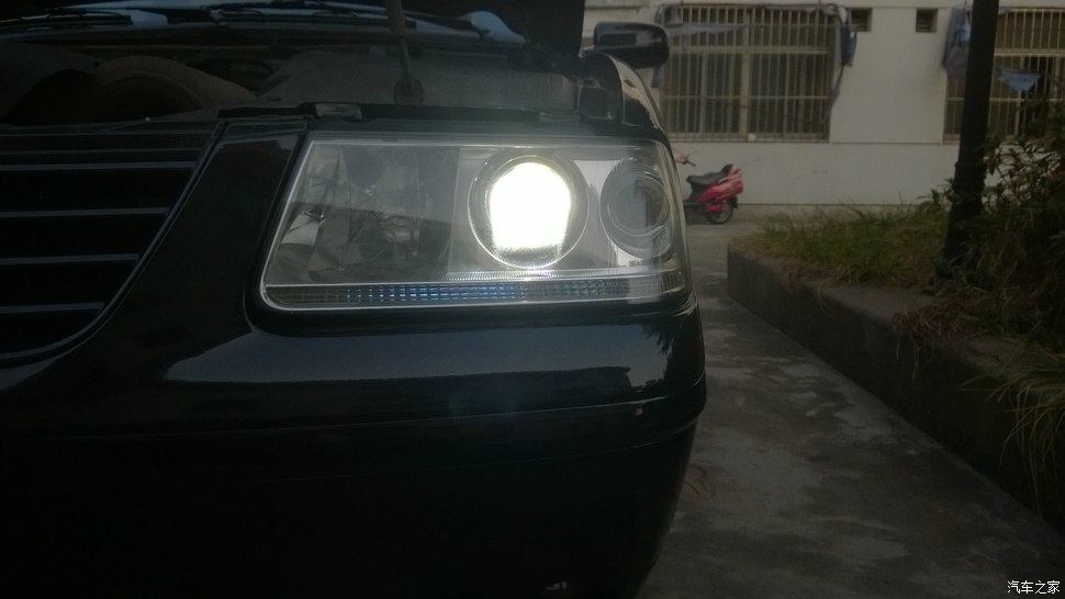 打开疝气灯,亮度还行,自己重新调过灯光高度