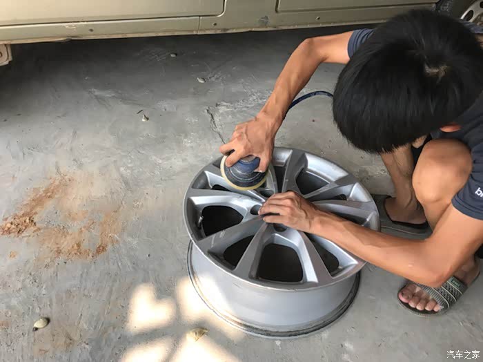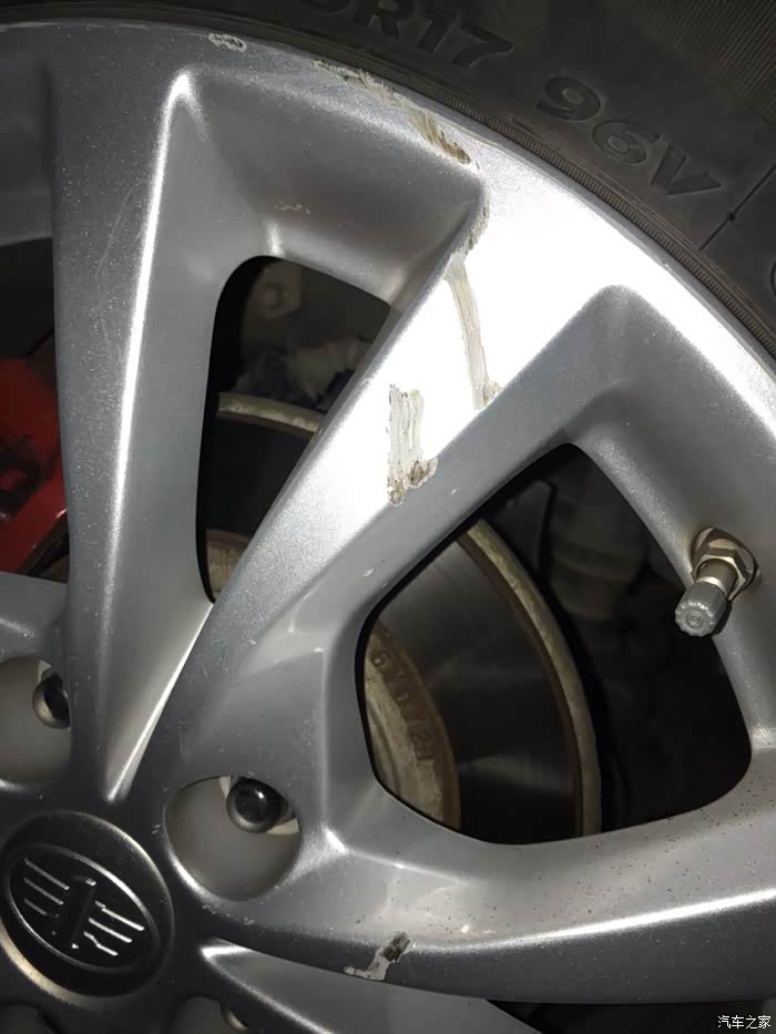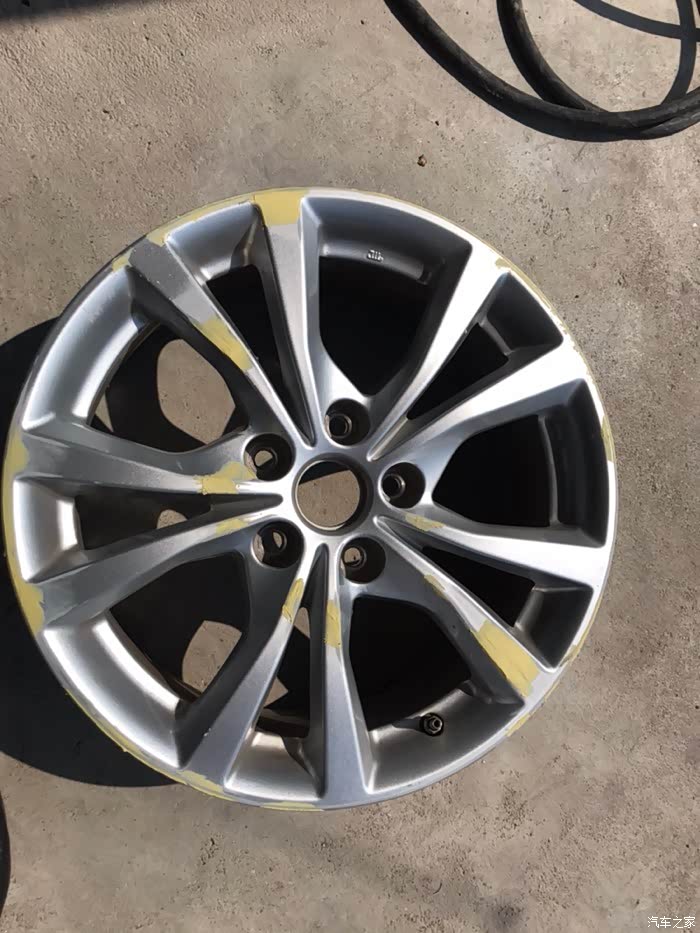 不小心把轮毂剐蹭了一下,还好可以修复。