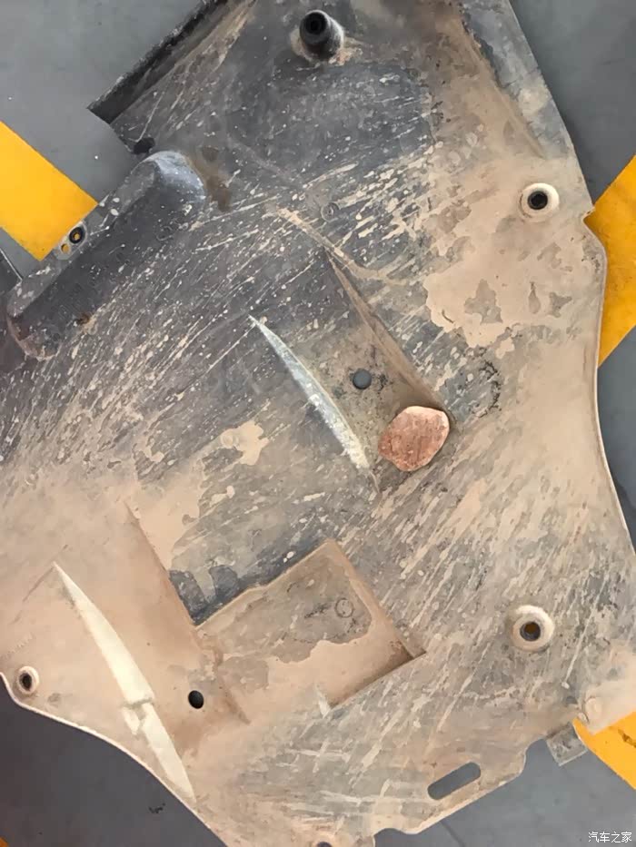 不知道这个石头是怎么蹦进护板里的,奇怪。
