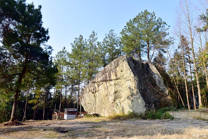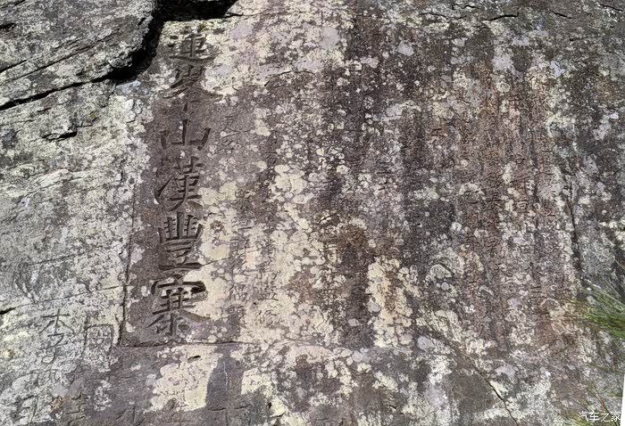 进入汉丰寨主峰,在缓坡处左边有一巨石,是五块巨石中最大之石,其上有人工开凿的痕迹。