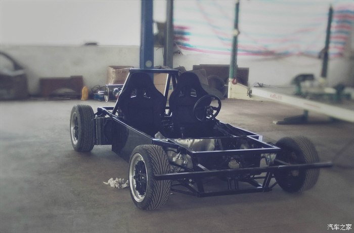 简单介绍一下我这个车吧,底盘采用的是Q345方钢用二保焊焊接而成,发动机用的是捷达1.6 大概 100马力,车重大概630kg ,0-100加速在7秒左右(水泥路面),极速没有测试过,最快3档开到过100。前后双A摆臂,4碟刹,15寸轮胎,无ABS.后置后驱。今年4月开始动工,都是利用周末时间,10月份基本完成。