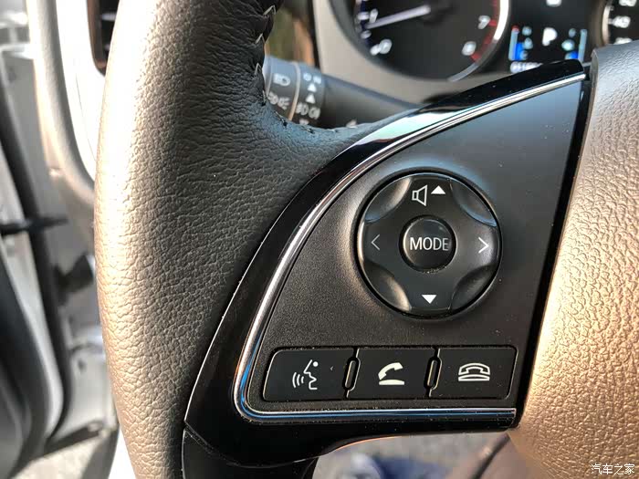 方向盘的左边多功能按键很灵活,音量调节大小,音乐模式下可以随便切换歌曲,再下面有一个静音模式,蓝牙模式的电话接听按键。