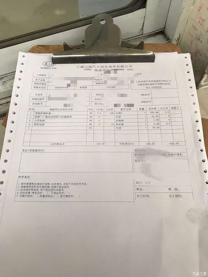 首保时候4S店师傅很认真,没想到二保换了个师傅,态度那个差,等回访电话来了,差评,以后坚决不去4S店。机油机滤空滤总共用了15分钟,买噶,单子上可是3个工时啊亲,就这么坑钱呢。算了,也就最后一次了,拜拜。