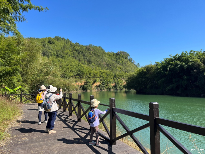 我直接停在景区附近就下车带着老婆孩子逛了,景区就像个大水库,有山有水有桥,空气呼吸起来格外新鲜,整个人都无比放松,小孩子还想要我哪天过来陪他来这钓鱼。笑死。