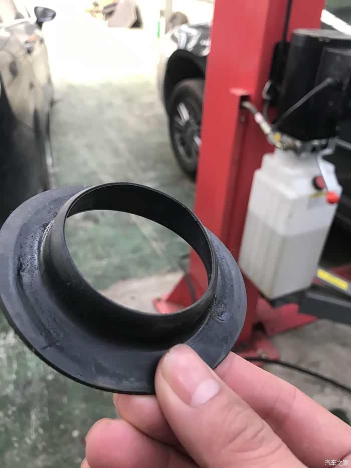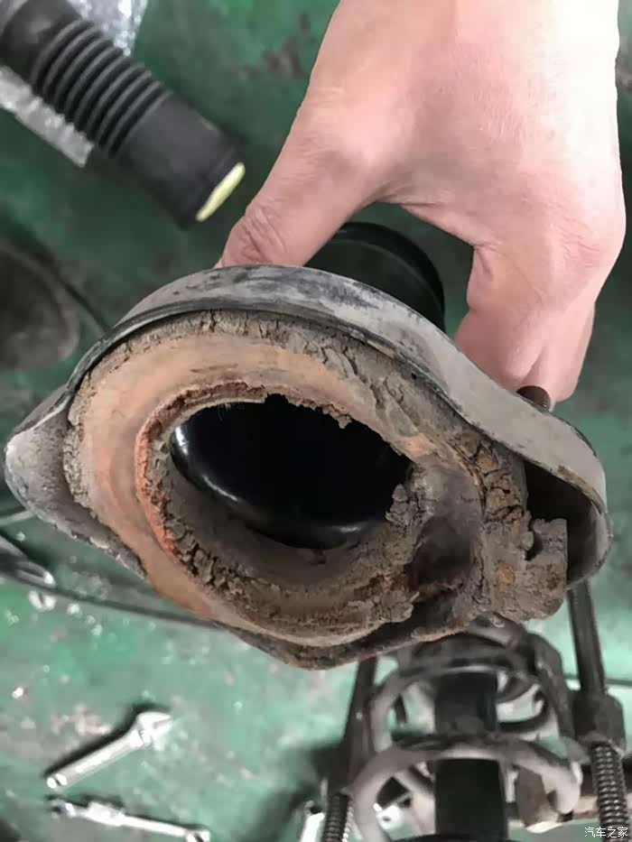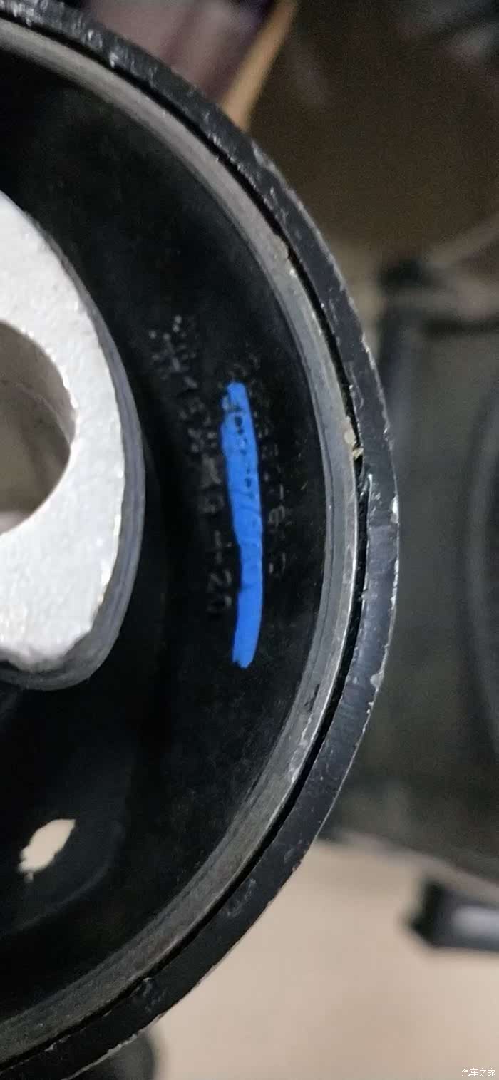 2.后托臂(2007年生产的BBDC原车),衬套明显老化开裂,过高架桥高速转弯,车子会侧倾。同时导致减震下榻,车身不稳定;