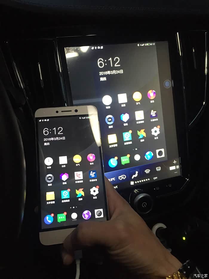 拿出手机数据线USB接口和大屏下面HDMI旁边的那个USB接口连接,(一定要这个接口,那些车载点烟器充电的USB接口不行)如图看下面