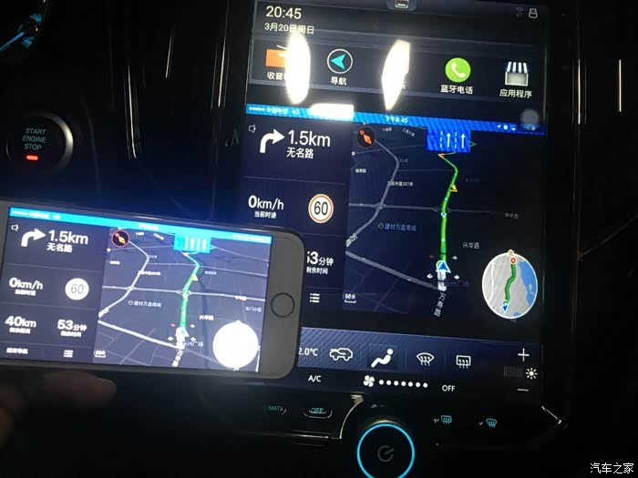 苹果同步竖屏只能这么大,没有安卓手机互联那样全屏,不过横屏是一样的,比如看电影,开手机百度地图都可以横屏全屏看,非常清晰不卡!
