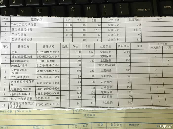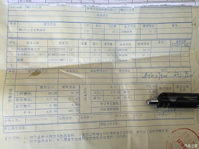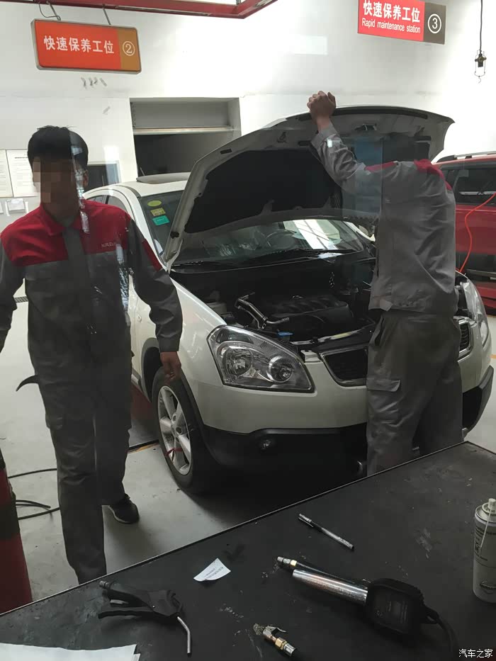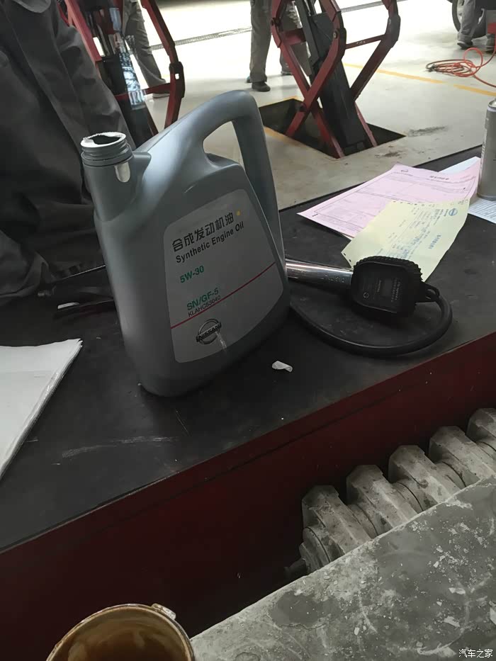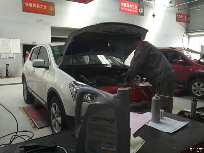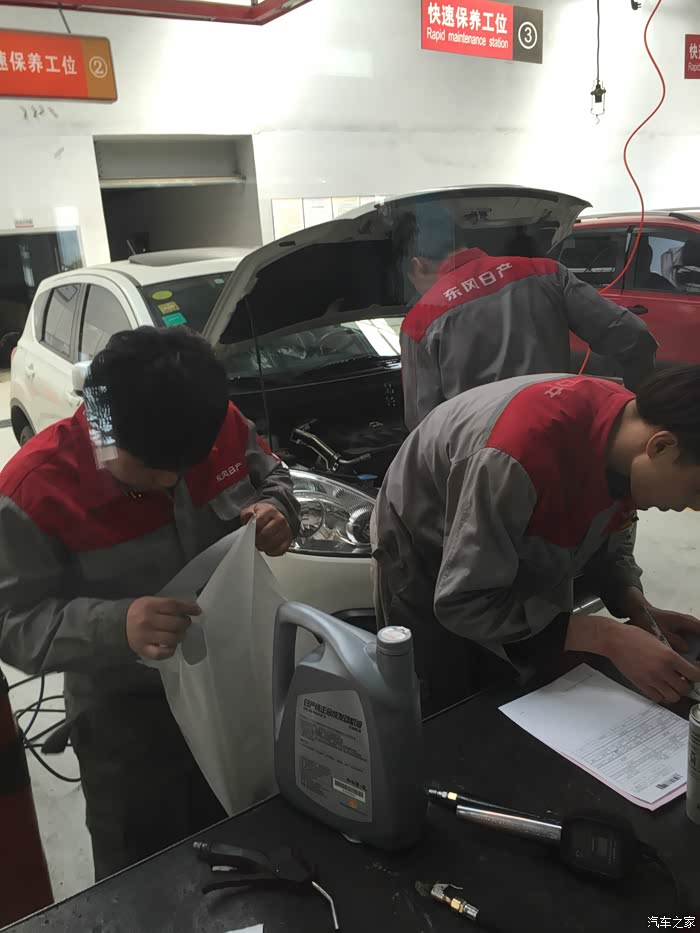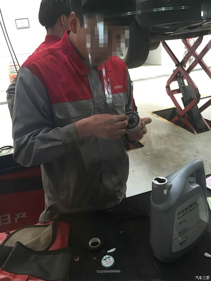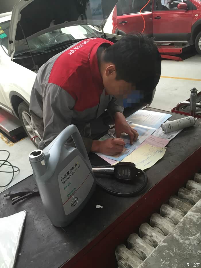 第二次是在9300公里的,时间大概是在15年入冬前.换的是日产半合成机油+机滤+前后轮换位.费用大约在450块.