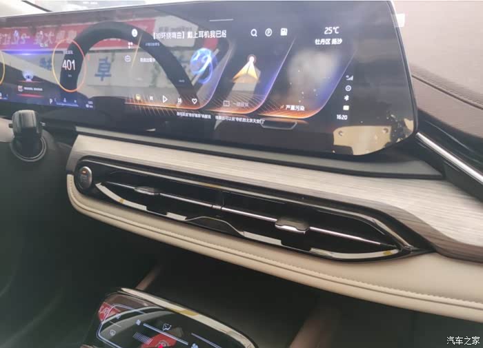 车展上时间也比较紧张,仔细看了外观后,我又坐在车里面开始研究起了内饰,发现思皓QX的内饰其实更加有品味。颜色搭配的是很高档的褐色,挺大胆的颜色,用材也很好,看得见的地方都是软皮材质,满满的档次感。同时各种配置功能做工也精致,12.3英寸的液晶仪表,12.3英寸中控大屏,还有旋钮换挡,方向盘换挡拨片以及触摸的空调触摸屏,再加上车门板的米白色配色,坐进去的感觉完全不一样。