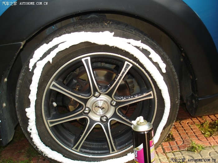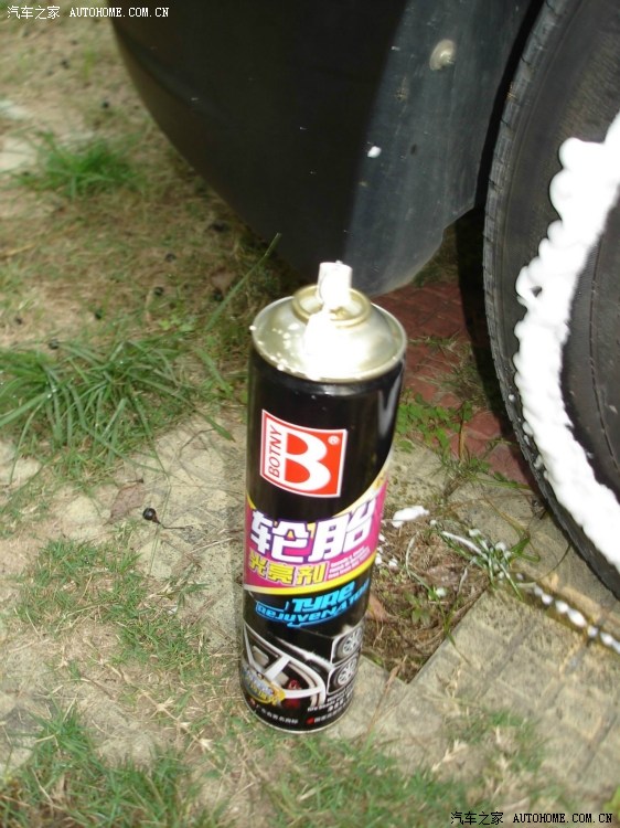 自己洗轮胎,光亮剂手摇后喷上用布擦均匀即可。