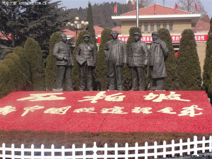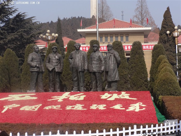 到达西柏坡后,首先在革命前辈雕塑前拍照!