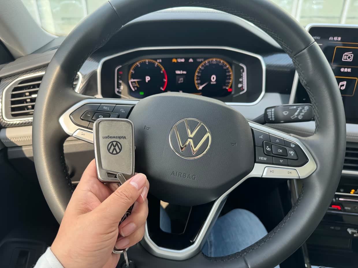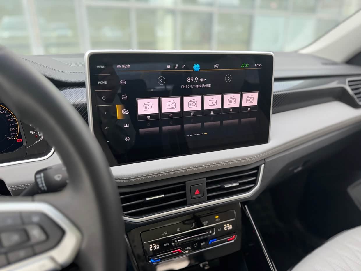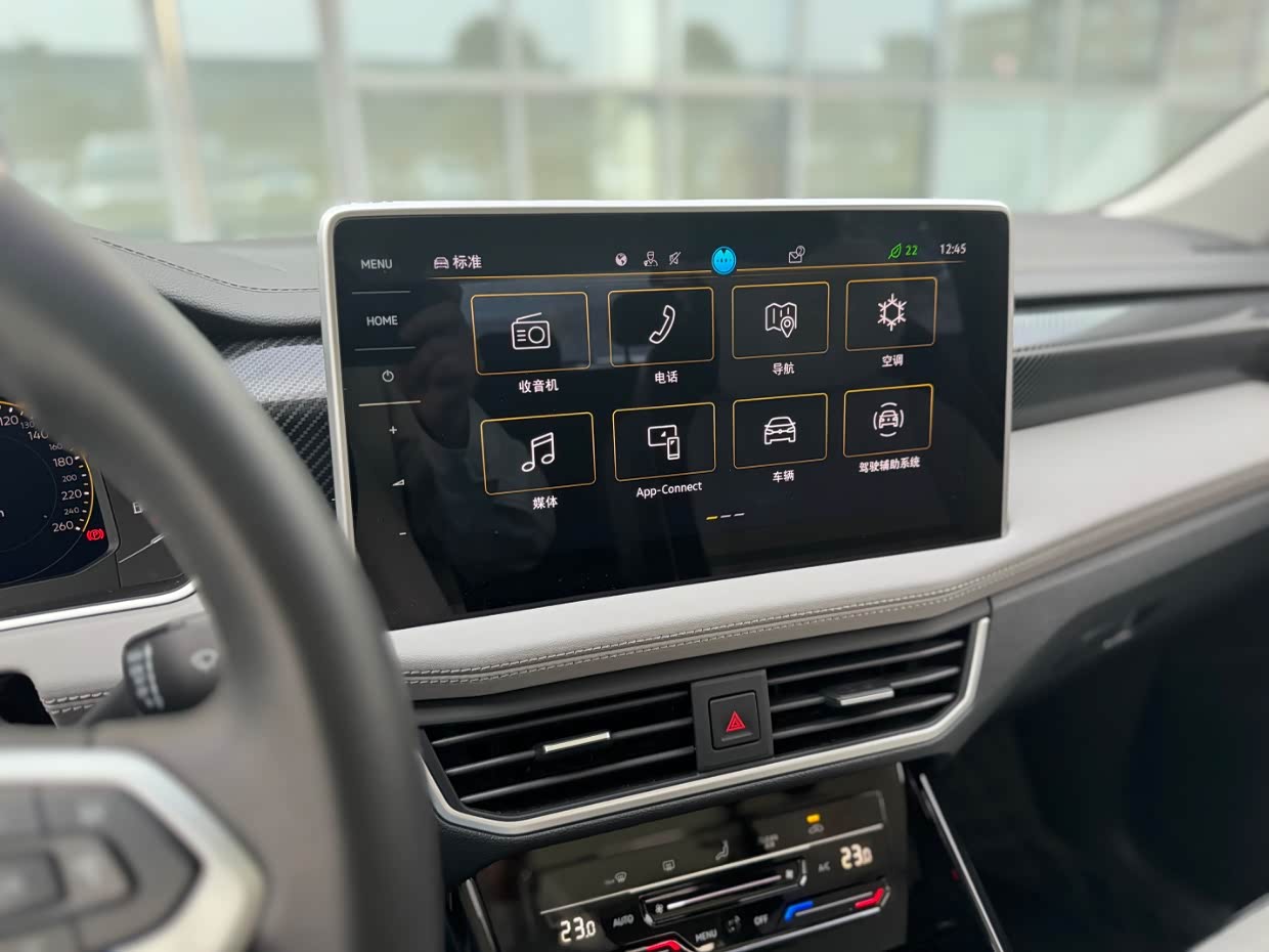 在配置方面也中规中矩,像中控显示屏,尺寸不算大但比以往大众的要大,界面简洁直观,提供了导航、娱乐、车辆设置等多种功能, 全液晶仪表盘,显示清晰内容也全面,还有一键启动、电动后备箱,这些也都配置上了。
