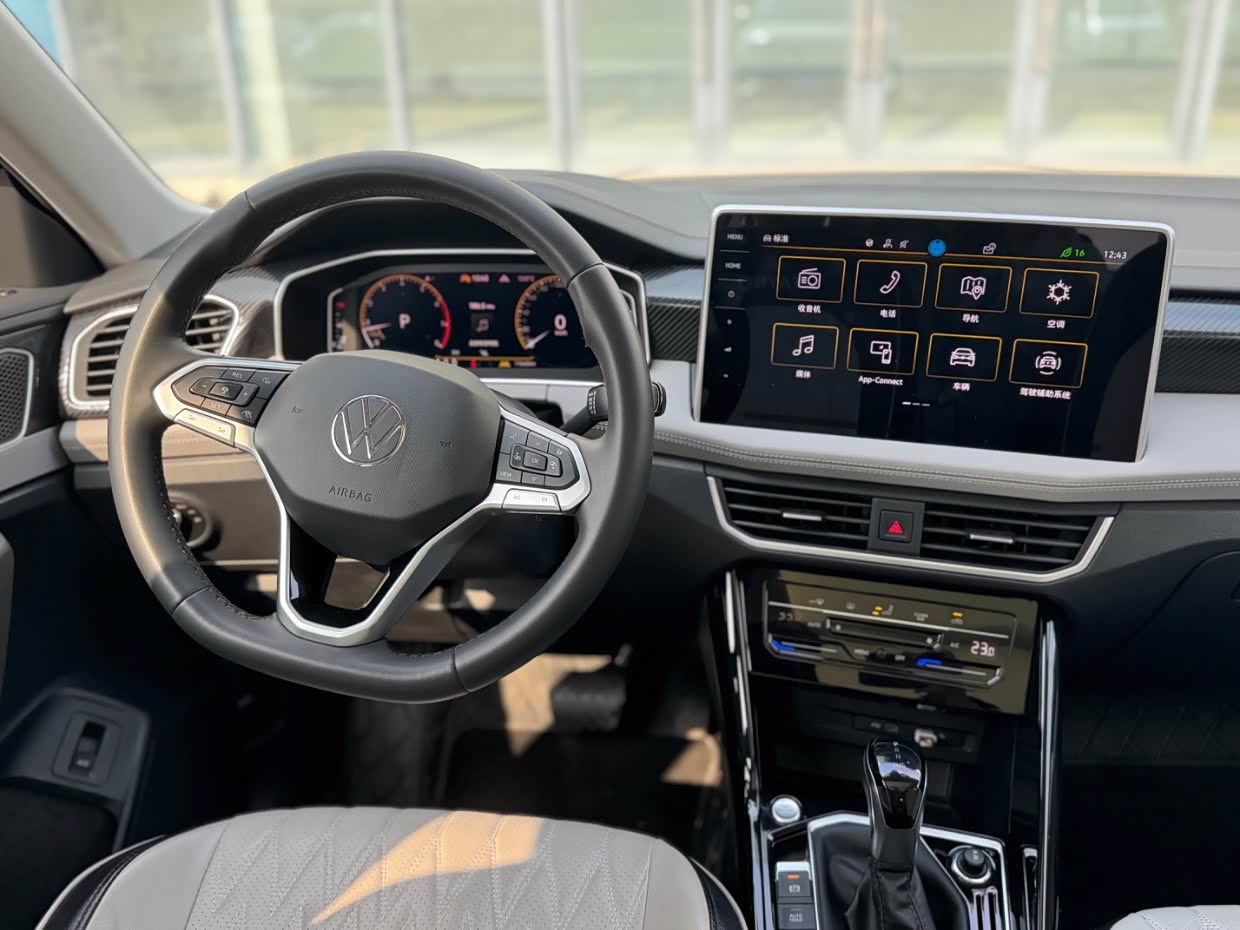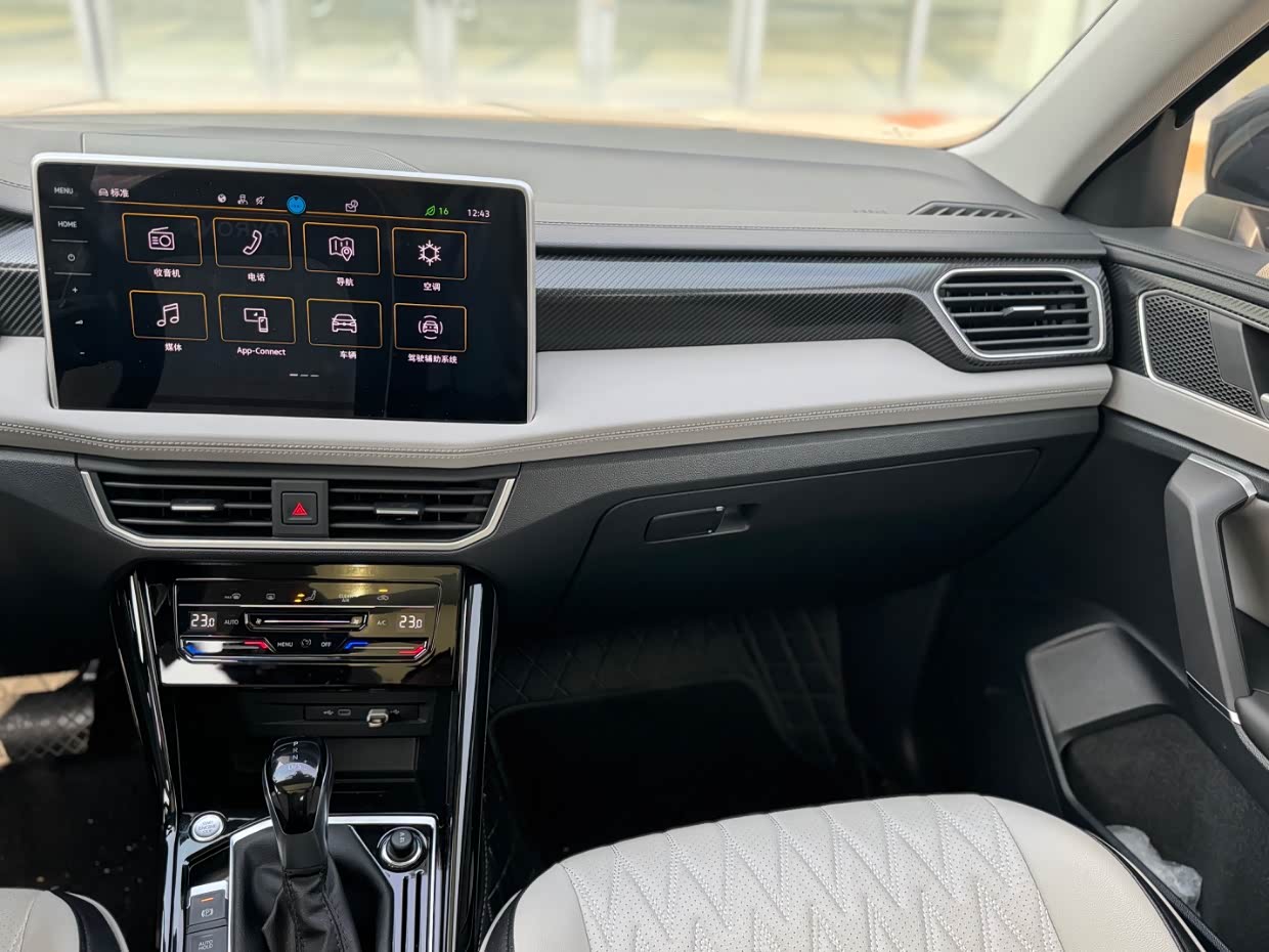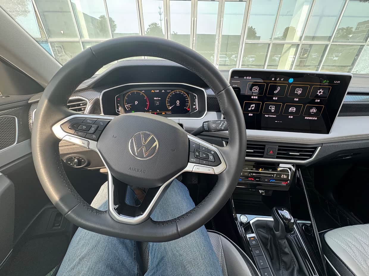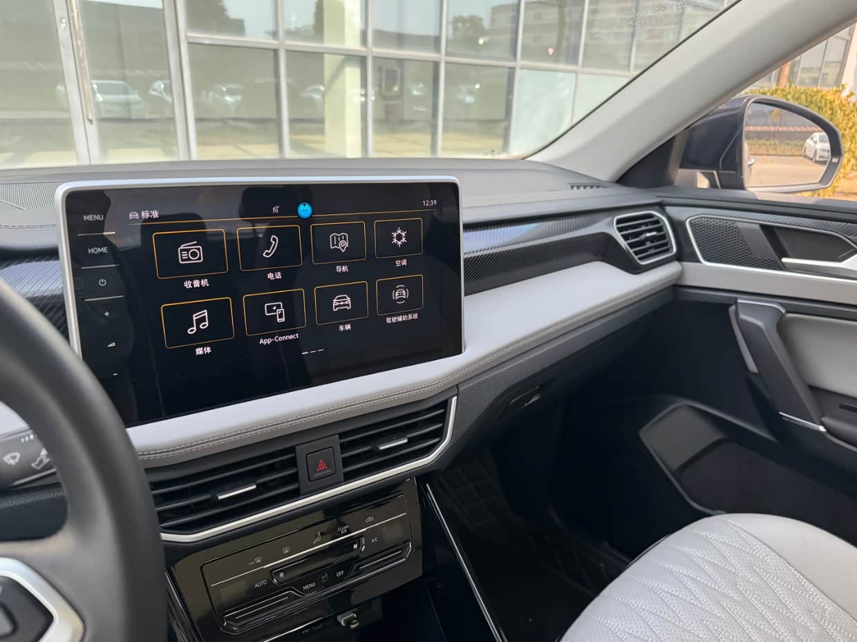 在配置方面也中规中矩,像中控显示屏,尺寸不算大但比以往大众的要大,界面简洁直观,提供了导航、娱乐、车辆设置等多种功能, 全液晶仪表盘,显示清晰内容也全面,还有一键启动、电动后备箱,这些也都配置上了。