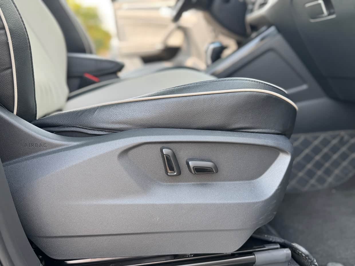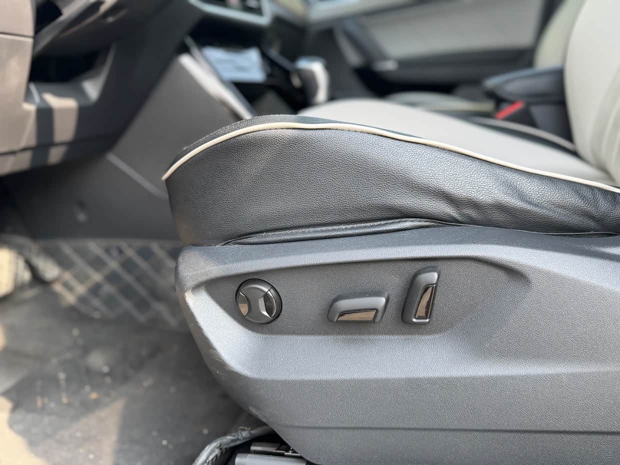 座椅虽然不是真皮的,但用料还不错,触感很好坐着也舒适,主副驾都带电动调节,还有腰部调节,很方便很实用。