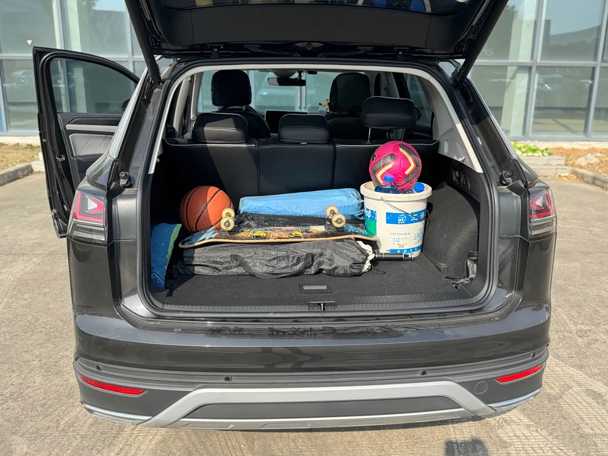 后备箱也是超大,正常出行的行李都可以放得下,而且后排可以放倒放平,我买了一个垫子,放倒后排后垫上,就是一张大床,露营可以睡车里了,后备箱两边还有挂钩,可以挂一些物品,细节做的还是很不错的,电动尾门也是极大的方便了使用操作便捷。