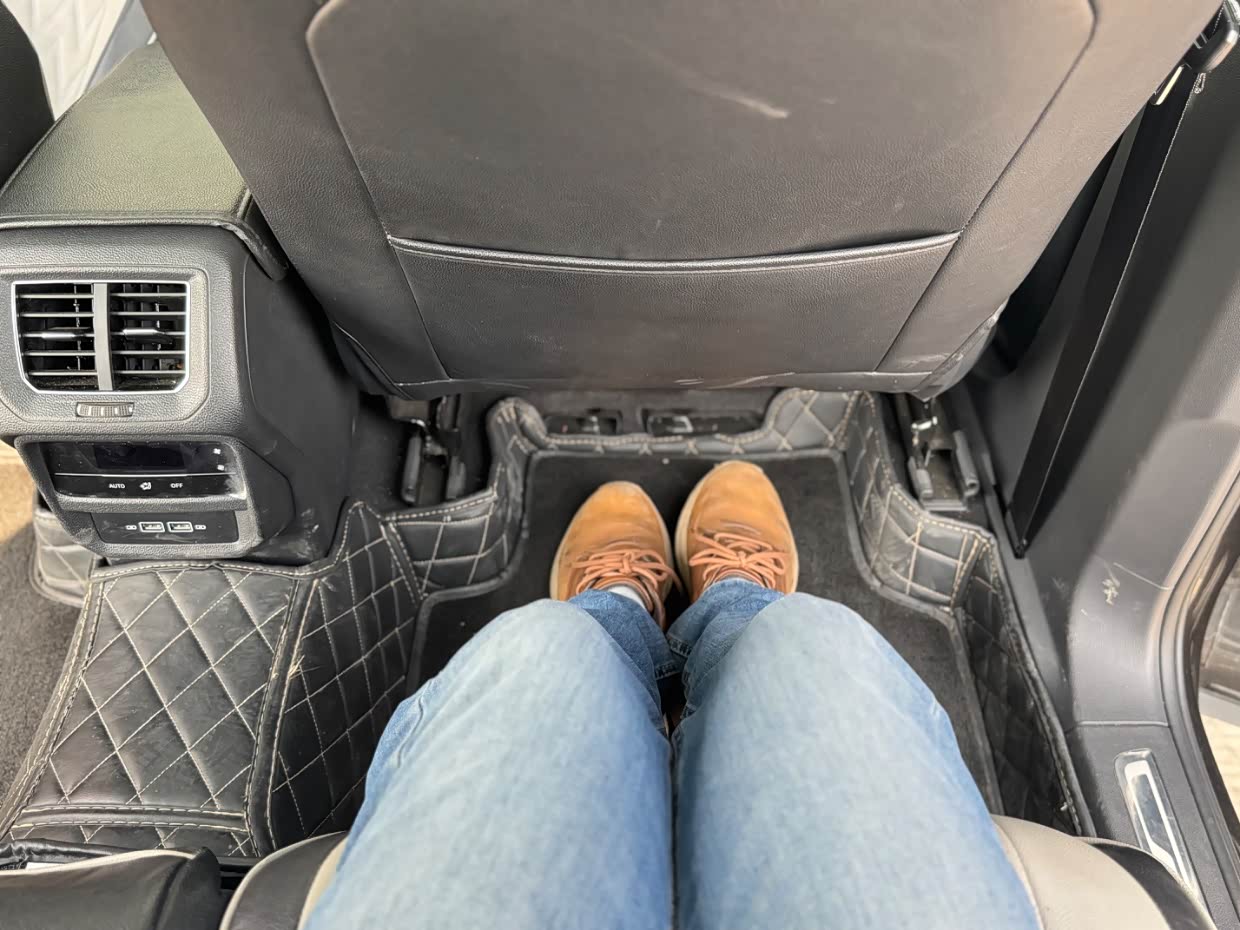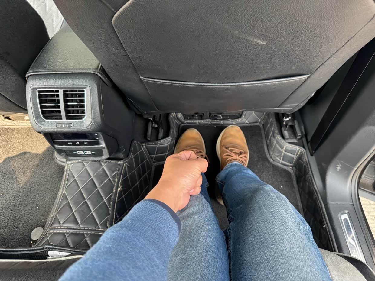 后排空间也是非常宽大,大空间也是探岳的一大优点,在后排翘个二郎腿也还有多余空间。