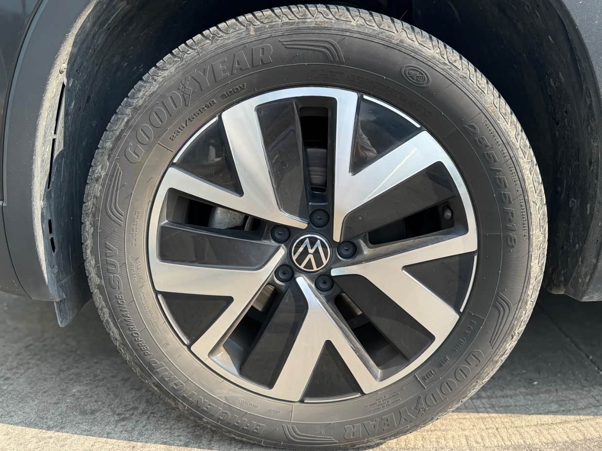 18寸的五幅铝合金大轮毂,在整车搭配上还是比较硬派的,运动感也十足。