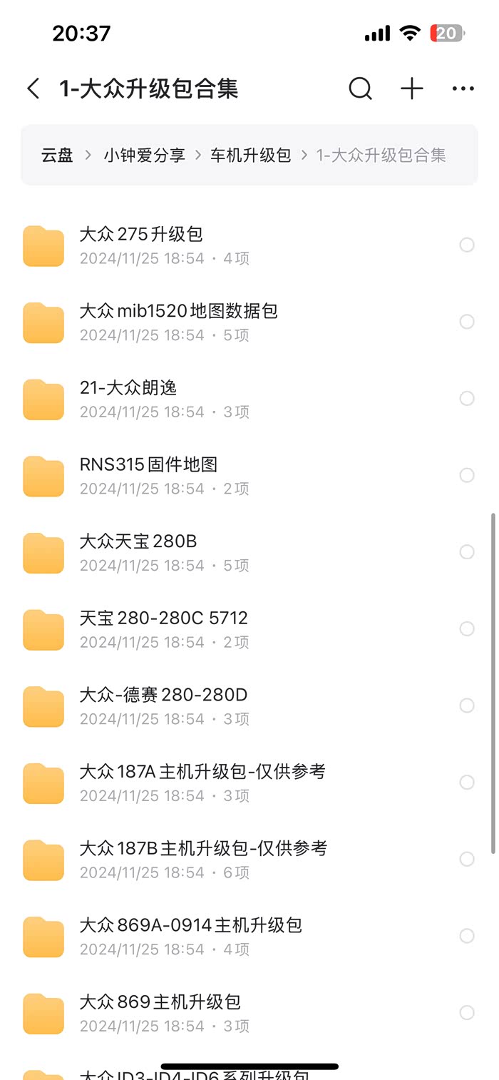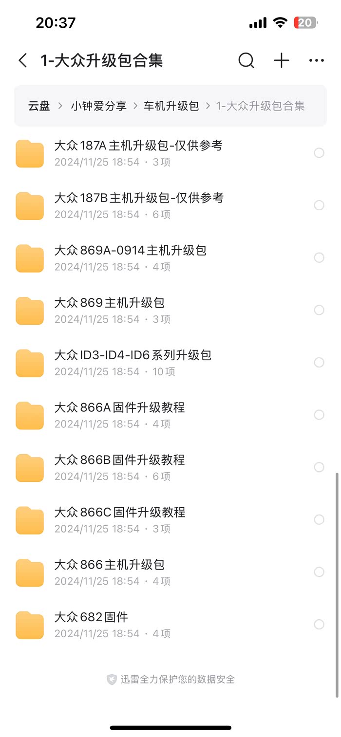 里面有你们想要的各种车型车机升级包,都在讯雷网盘里,讯雷首页搜索:小钟爱分享。想要的自已去下载,里面的所有升级包都是官方的升级包,含保姆级教程