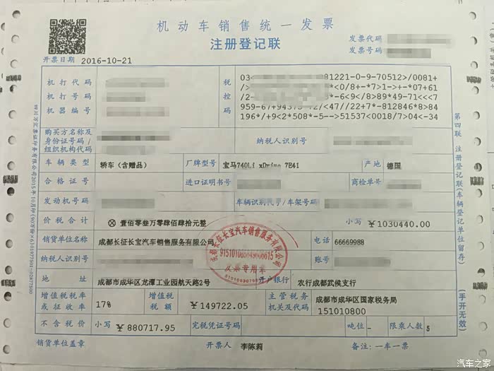 路虎旁边就是宝马,进去直接看了740豪华,因为6月份的时候有一次有事去了次宝马4S店,我给我爸对这车基本比较了解了。直接去试驾了一圈。当时是我试开,他试坐。。。。然后就直接问价格,按揭21个点 全款19个点 按揭给21000手续费。一个月提车 当时有辆神秘灰在路上,那颜色感觉比星空黑好看的多。 我爸是急性子,看了3家店就不耐烦,就直接说订车。根本没有怎么还价,我爸就说送辆小孩的自行车给他孙子,结果那销售打死都不送。。。我就气着拉我爸回家吃饭,给销售说我们吃了饭再来。