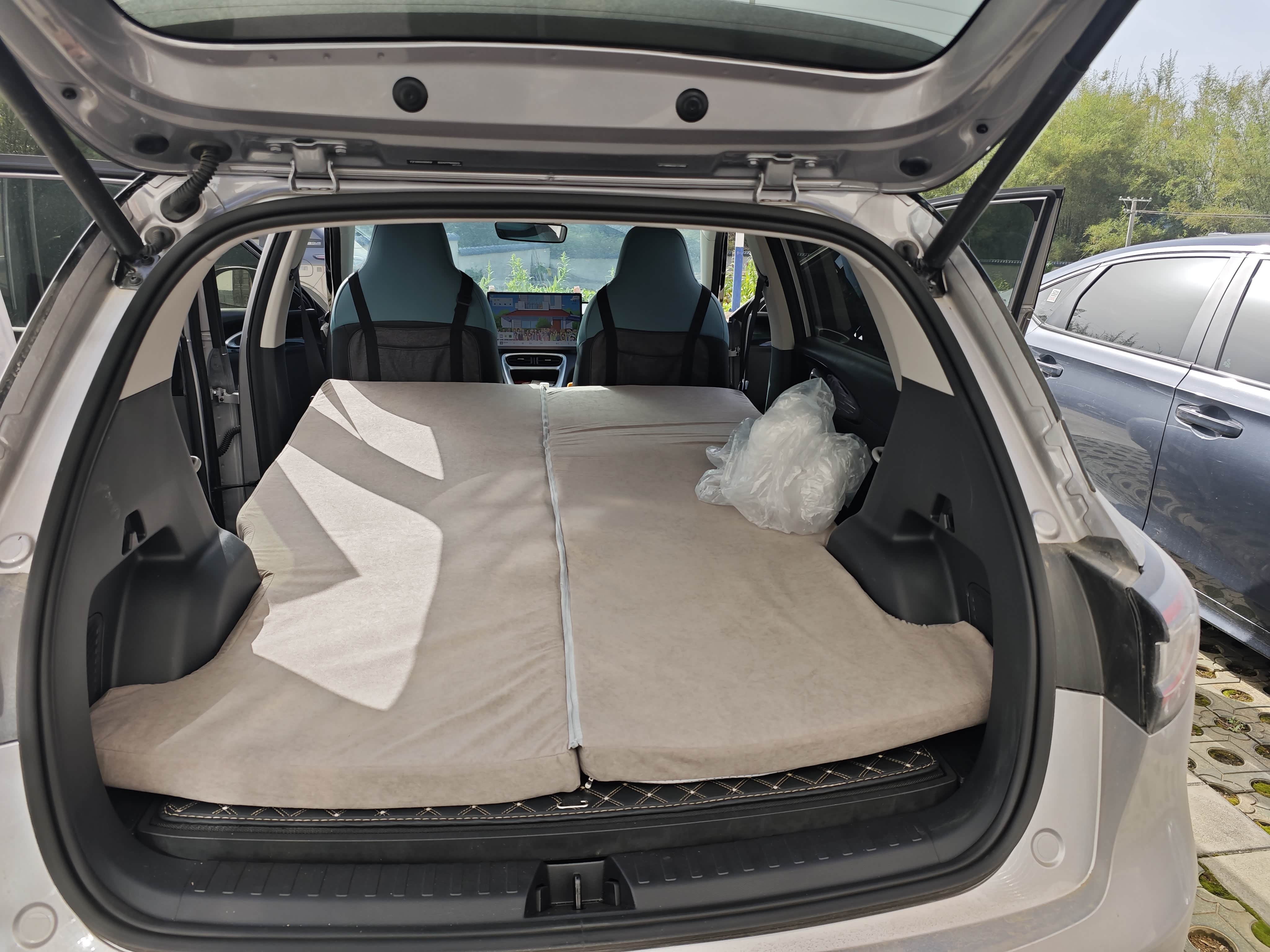 车后排放倒就变成一张床,实现可以在车上睡觉,露营方便,可以睡两个人非常实用