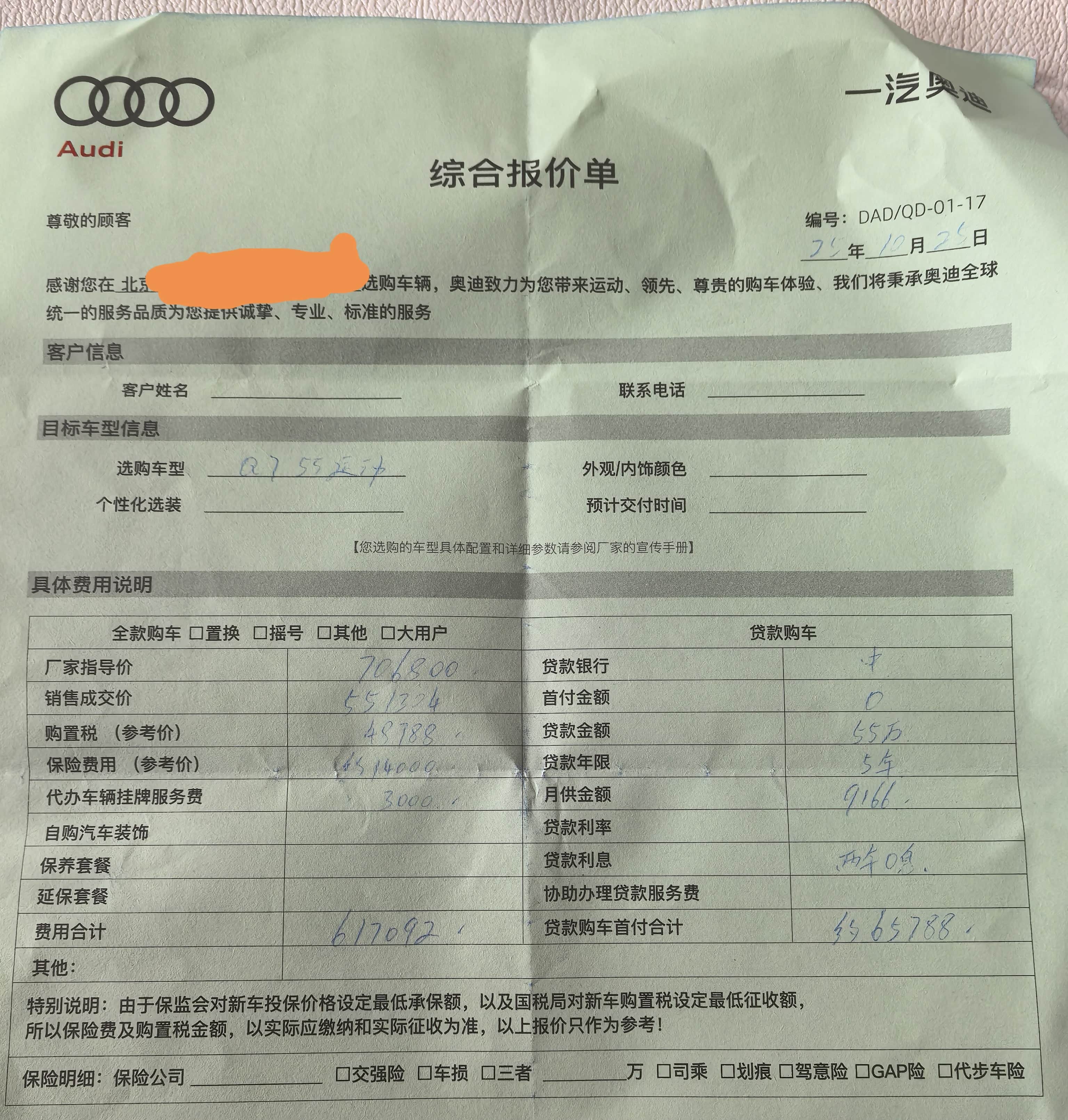 广东这边一进门就7折了,不着急的话明年6.5折是很有可能的,现在q7库存量太大,不值钱,市场地位低,懂车的人不多。
