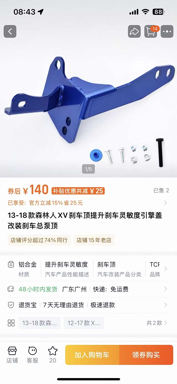 12万公里的斯巴鲁,是第一辆车也是很满意的一辆。最近没有换车的计划就把该换的易损件都换了,还能再战几年。在双“11”期间把心情件买来了,三件套,前顶吧、井字架、后拉杆,三样才600多点。在周末的时候请师傅帮忙换上了,不管效果咋样心情美丽了,感觉性价比很高。