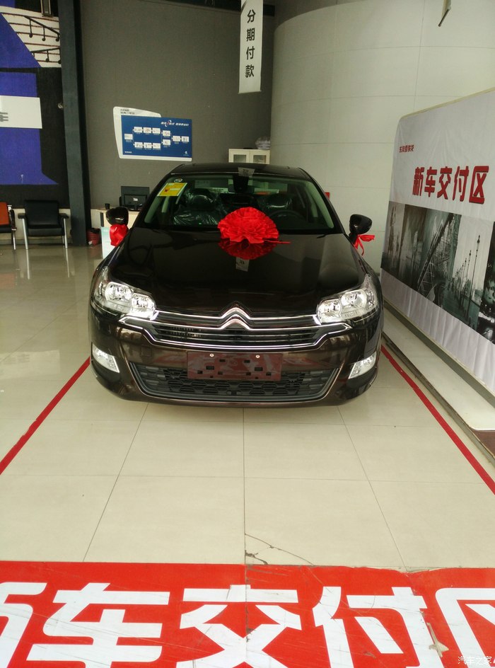 话说提车真是很急,二月五六号吧决定的;到4S店试架了一圈C5 1.6T尊贵,马上谈了尊享,美女销售出口就是优惠三万,个人觉得比较靠普,当时还报了另外一个4S店的团购,但是这个4S店的销售太不靠普了,现在网络时代还想忽悠我,直接出门走人。回头就到之前试架的4S店继续谈,左谈右谈也没有占到什么好处,前面说的含7000的装饰礼包也不知道是些什么,反正最后就送了4S店专用粘膜、挡泥板、及原厂普通脚垫三小样,就这样吧……乱了半天,该来图了,国母款小牛机拍的,将就着看吧!