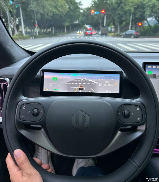坐进车内的瞬间,翻毛皮材质的触感一下就把质感拉满了 —— 座椅、门板甚至顶棚都用了这种材质,摸上去细腻柔软,和我之前摸过的十几万级合资车内饰完全不是一个档次。中控的三联屏操作起来很流畅,车机界面逻辑清晰,还能看到激光雷达的布置,这在这个价位的小车里确实少见。静态体验时,能感觉到做工很用心,比如空调按键的阻尼感、储物格的植绒处理,都透着一股 “超出价位” 的精致。