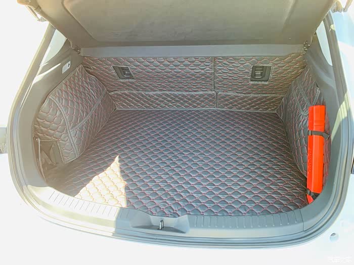 后备箱,刚刚加了个垫子,空间来说日常够用了。正常20寸行李箱我觉得放六个都没有问题。