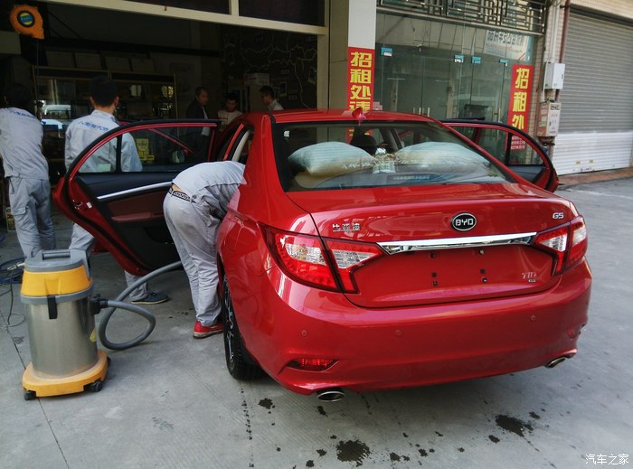 可是一坐进去(可能因为刚坐完s6),觉得好挤啊(我180cm的个头),然后试也没试就出来了~ 走出了比亚迪4s