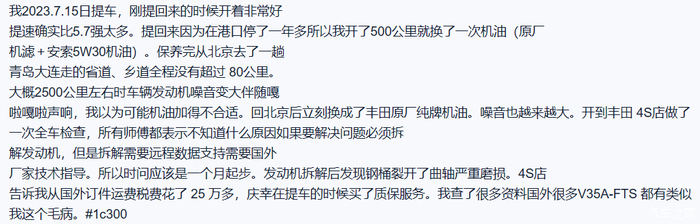 据说2021款的LC300发动机就是有问题,你可能就是买到第一批到港的车。