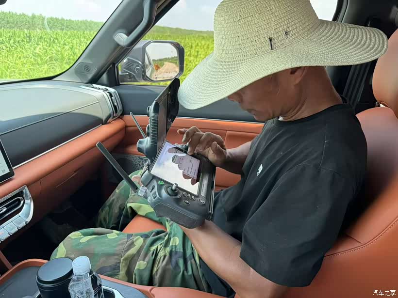 在等待无人机电池充电的间隙,我就待在车内。Z9PHEV的内饰设计十分贴心。座椅设计很合理,柔软且支撑性强,就算长时间坐着,也不会感到腰酸背痛。车内的空调制冷效果极佳,在外面烈日炎炎的情况下,车内却能保持凉爽宜人的温度。我坐在车内,操作着无人机遥控器,规划着接下来的作业路线,一切都显得那么从容不迫。