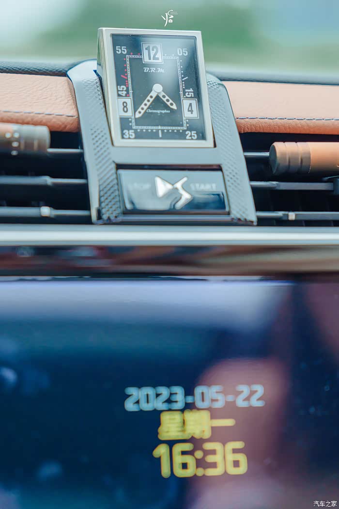 这个点火的按钮则是在中控屏上方,只要点火,钟表也会自动翻起