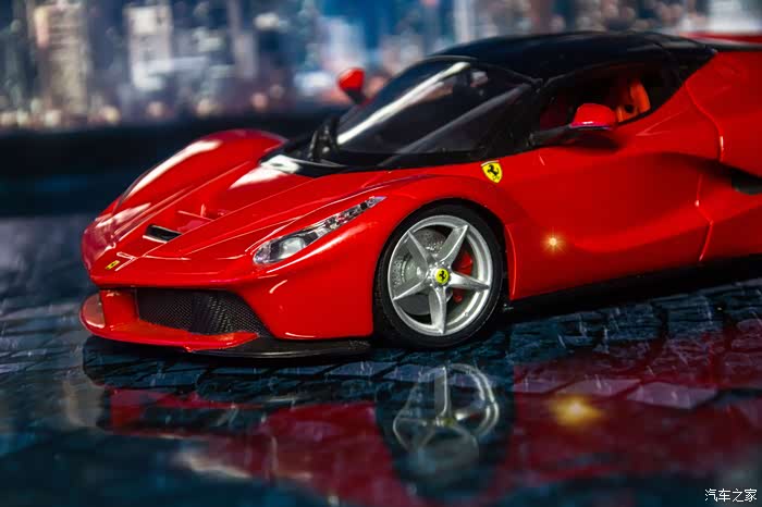 这次拍的车模,是1/24比例的法拉利LaFerrari,牌子是比美高(Burago),一个意大利的汽车模型品牌。法拉利经典的大红色款,,可活动的部件不多,只有尾部的引擎盖。标志性的鸥翼门很完美的缺失了,没有呈现出……