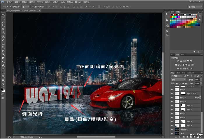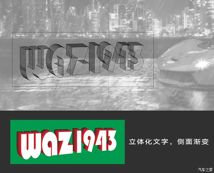 我想做一个立体字效果放在车旁边。免得画面过于单调。