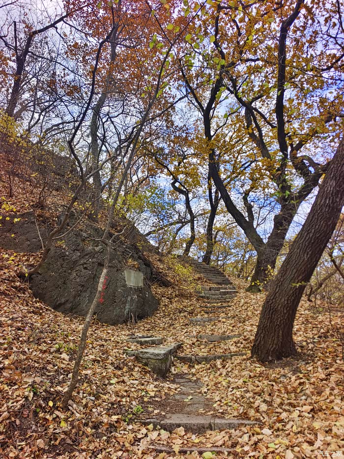 登王杲山的路不太好走,石阶上有一些苔藓,一定要穿一双防滑的鞋。