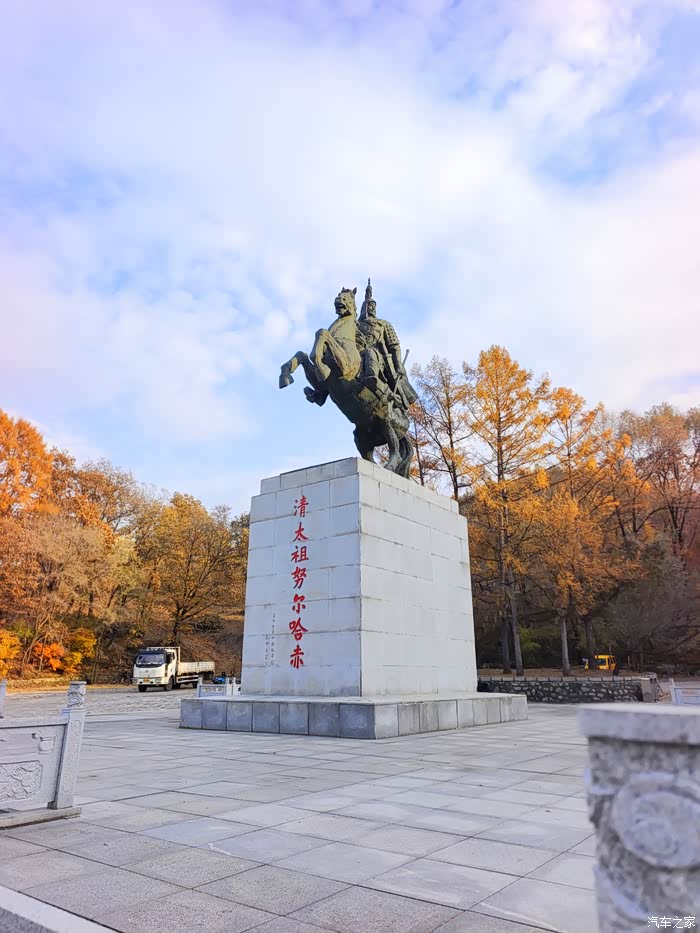 继续前行,就来到清太祖努尔哈赤雕像。该雕像为青铜材质,建于1999年,高11.5米,气势宏伟,展现了努尔哈赤驰骋疆场的历史场面。606年前,这里还曾发生过一次著名的战役——萨尔浒之战。1619年,明朝与后金在萨尔浒展开决定性战役,后金首领努尔哈赤以“凭你几路来,我只一路去”的战术,5天内击溃明军四路大军,彻底改变了辽东战局,奠定了后金的基业。