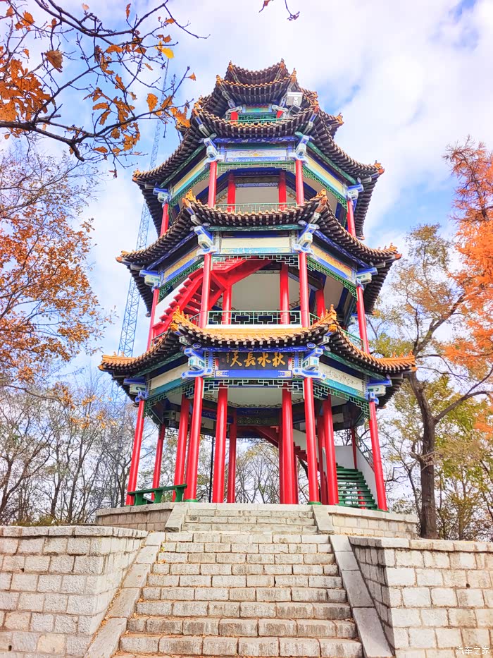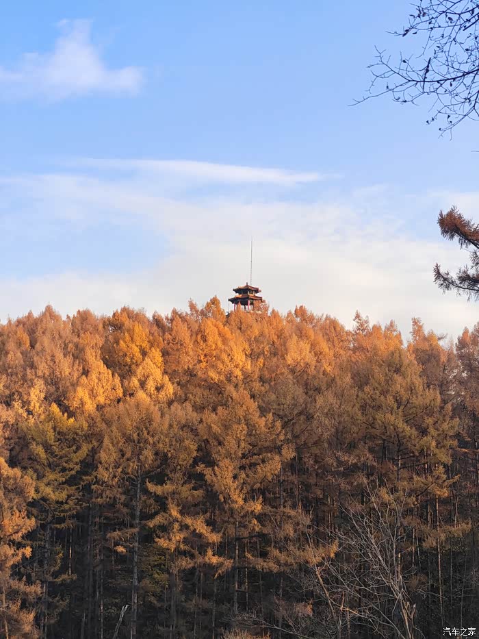 下了王杲山,我东行800米前往秋水长天楼。作为土生土长的抚顺人,萨尔浒风景区常来,可秋水长天楼我还没有登上去过。前往秋水长天楼途中,又见到一处盛景,成片的落叶松铺展成金黄海洋,秋水长天楼静立其间,楼与林相融,静美如古画,秋的韵味在光影里慢慢流淌。