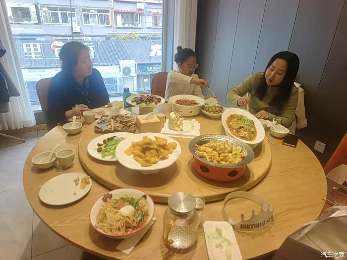 游览完三慧寺,标志着整个萨尔浒景区游览结束,看看时间,已经是下午了,一顿美食当然少不了。俗话说“儿生日,娘苦日”,饭店就让老妈选。老妈爱吃鱼,她选了一家市内很火的吃鱼饭店,媳妇点了6个老妈爱吃的菜。