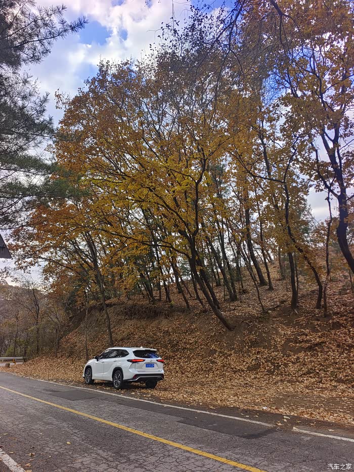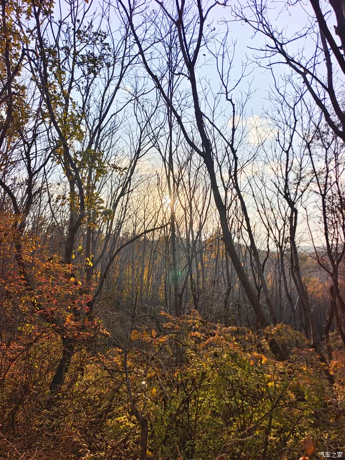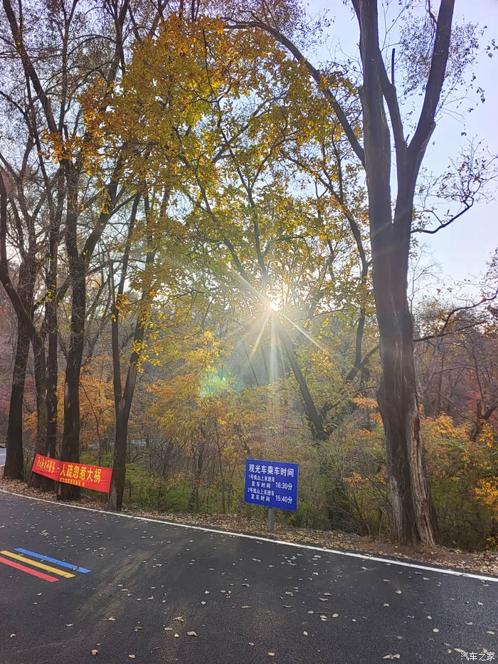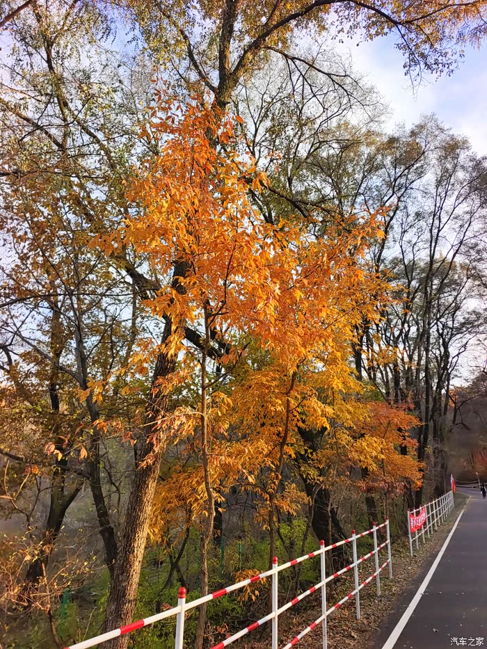 驾车20分钟后,即将到达萨尔浒景区大门,在达到之前,看到一片白蜡树很是惹眼,我把车停在树下,让爱车融入到这晚秋的美景之中。
