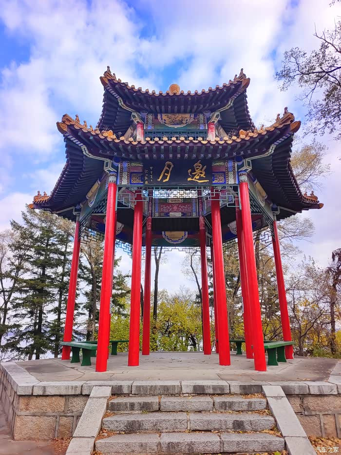 邀月亭为仿古建筑,雕梁画栋,在这里能近距离接触大伙房水库。邀月亭近水楼台,风景优美,冬季可欣赏盛大的雪景,开春时能听到巨大“哐哐”的开河声。