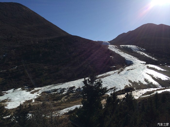 行程重新制定迎着朝阳7点出发(因为我也高反失眠1点醒来后每个整点都会醒,感觉鬼片里的情节一样,所以起来的更早)。先去加油站加油,昨天下午到新都桥时油已经不到,那时是下午,脑海里鬼使神差的浮现出哪里看到的早晚加油最好的理论,决定今天早上加。就是这个决定导致第一次油量告急。因为第二天新都桥两个加油站都没有人,等到了8点还没有人,又决定了今天回去再不走时间耽误了,再看看地图去沙德乡有加油站,估计去一趟雅哈垭口的油应该够,靠赌一把的心态前进(其实后来想想真不可取,雅哈垭口那一截路人迹罕至如果半路没有油那才是叫天不应叫地不灵啊)甲根坝到雅哈垭口此段路暗冰较多但不暗冰路段长没有安装防滑链也能通过。