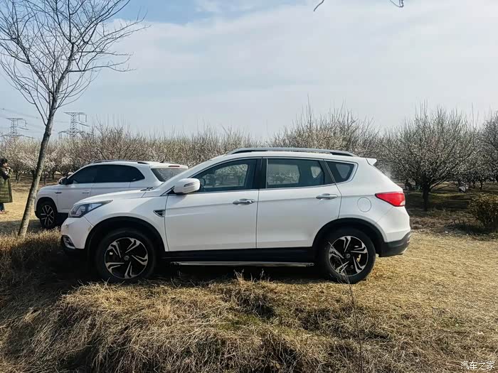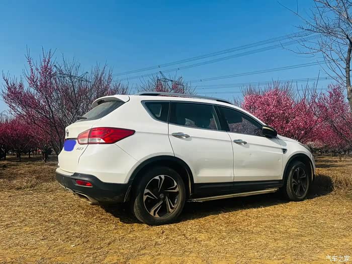 双飞燕车标与梅花相交辉映,绽放光彩,如果说风神ax7是移动的家,那么停在梅园的ax7就是一栋别墅。