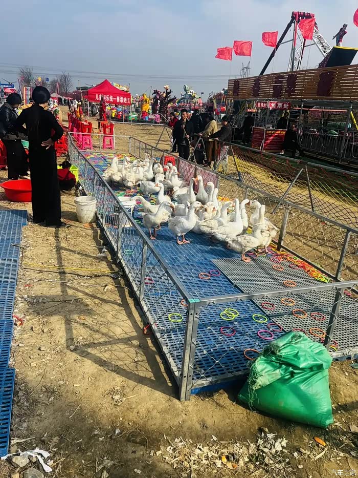 首先来到了这些游乐场地,差不多5亩地的面积全是这种娱乐设施,而最为热闹的就是这个套鹅游戏,周围围了很多人,大家都跃跃一试,想要套只鹅作为战利品!