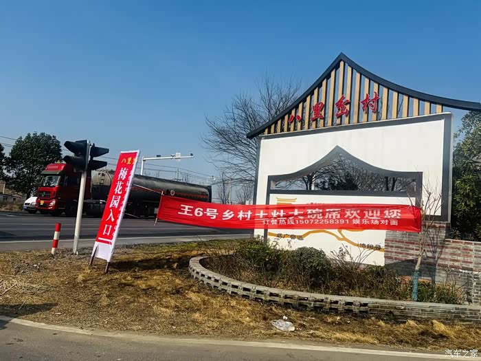 路上也打满了农家大碗席的招牌,远远望去,很多大型游乐设施,而路边停满了电动车,只好硬着头皮将风神ax7往前面开。