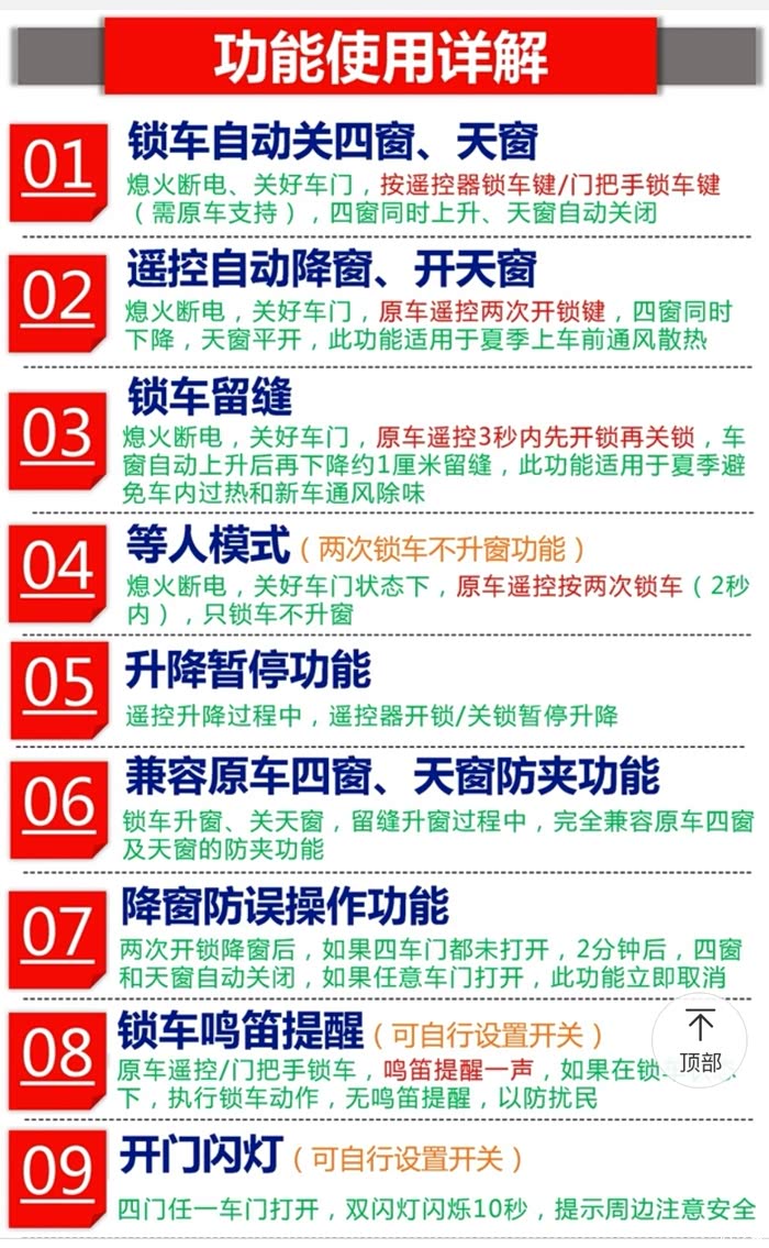 4.自动升窗器180,这个模块功能强大有26项功能,目前使用不影响原车功能,一切正常。这些功能还可以用遥控钥匙或者主控按键关闭、开启,使用非常方便,基本上想要的功能都有了。强烈推荐安装这个模块。