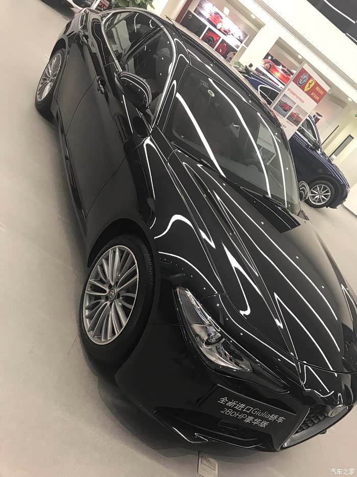 但当我见到giulia实车的第一眼、我就发现自己的眼睛根本离不开这台车了、耳边的嘈杂和销售的介绍全部自动过滤掉、各位看官老爷们应该还记得起情窦初开时见到喜欢的人的那种心跳吧、毫不夸张的说楼主第一次见到giulia就是这种感觉。
