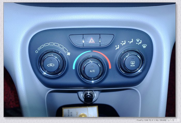 空调旋钮手感不错!点烟器那里晚上有一圈蓝光,很好看!